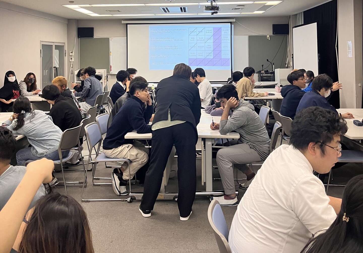 積極的に質問をする、生徒同士で教え合うなど、クラスがとにかく賑やかで楽しかった。時々ハメを外してうるさくなるときもあり、注意する場面もありましたが、生徒のみなさんは真剣に授業に参加し課題に向き合っていました。